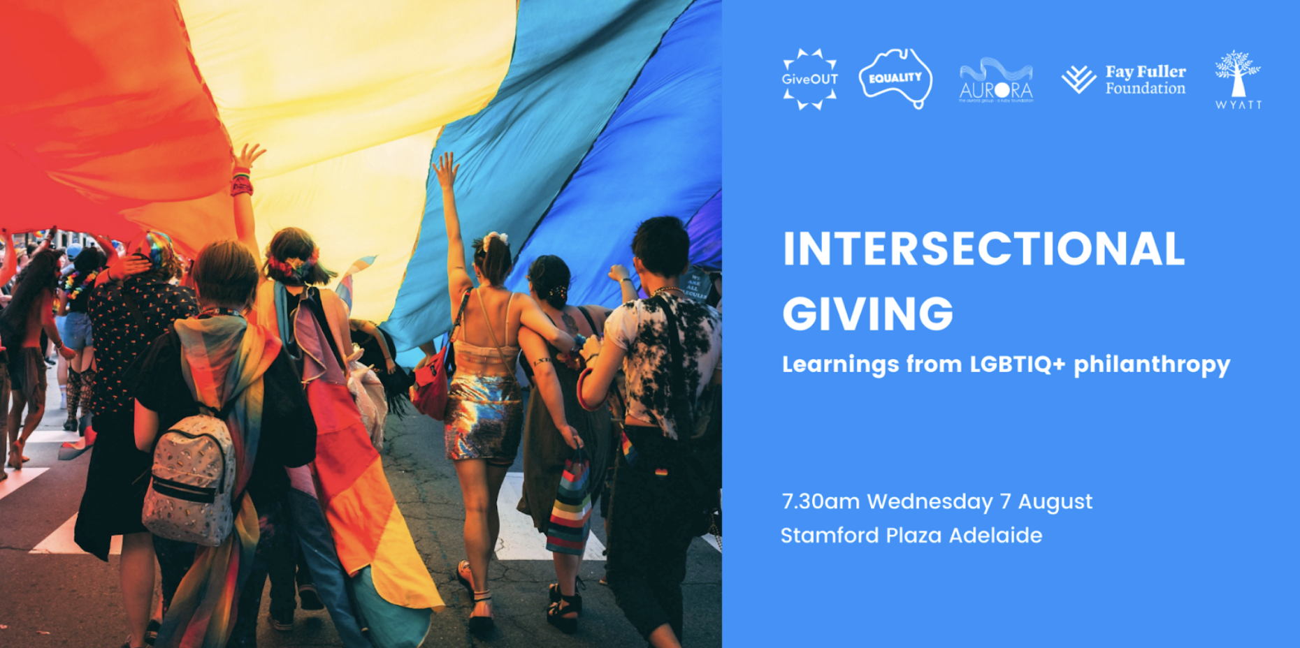 GiveOUT, Aurora and Equality Australia co-hosted a breakfast panel event on learnings from LGBTIQ+ philanthropy to coincide with the Philanthropy Australia conference in Adelaide. Thank you to Fay Fuller Foundation and The Wyatt Trust for your support in making this event possible.