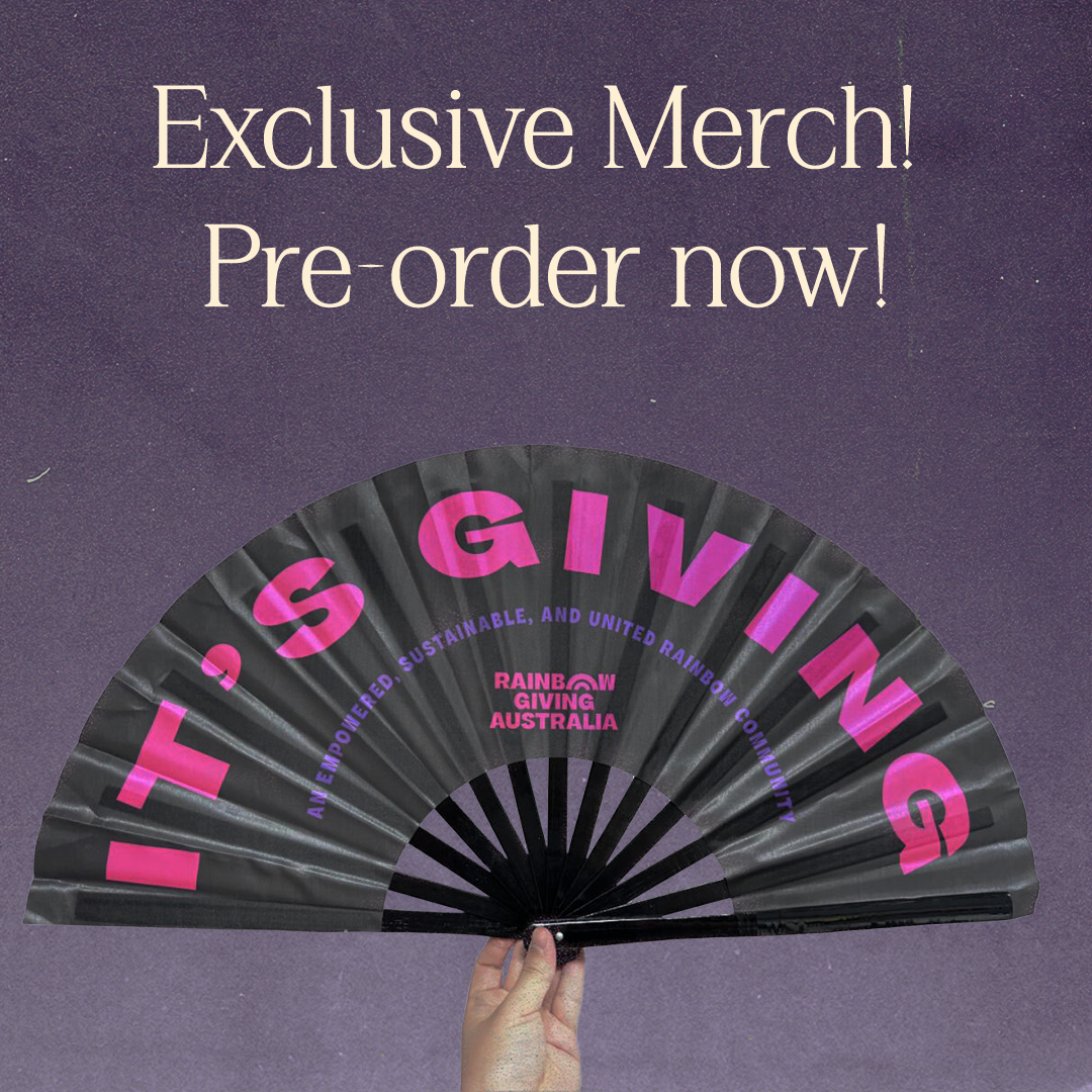 Secure the limited-edition “IT’S GIVING” fan, designed exclusively for this year’s guests
